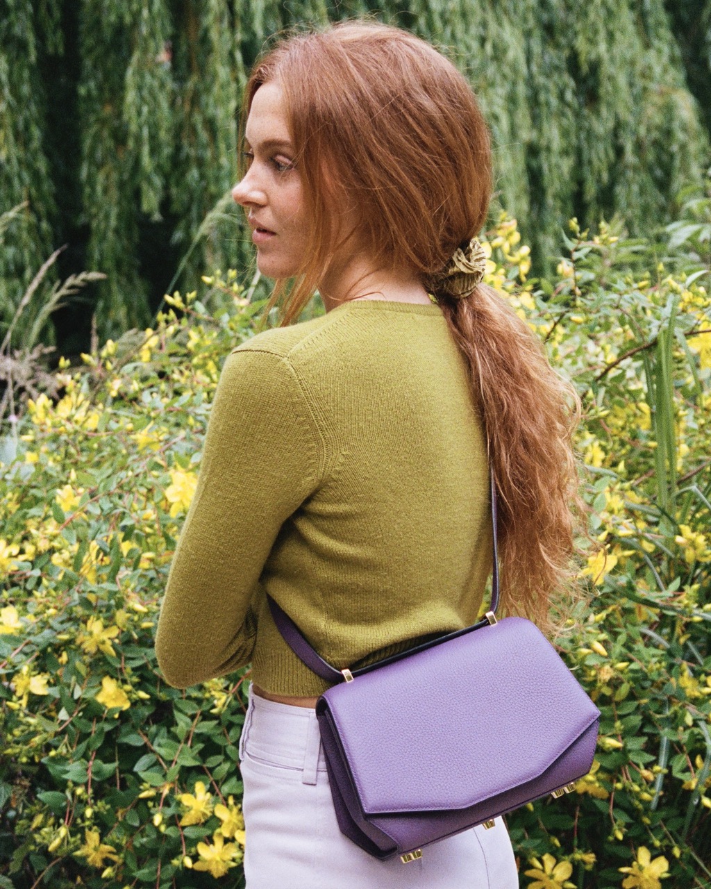 The Signature bag can be worn on the shoulder or cross-body. Contains ample storage space and two patch pockets.