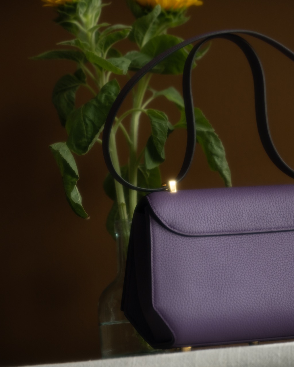 Blueberry Signature bag handcrafted by our saddler-leather craftsman in our workshop near Paris. The outside of the model is in semi-aniline full-grain taurillon leather and the interior is in taurillon leather nubuck finishes. Both leathers come from our suppliers based in France. Branded jewelry clasp from the Signature line.