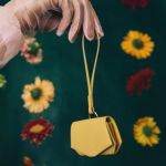 Mimosa yellow Signature charm handcrafted by our saddler-leather craftsman in our workshop near Paris. The leather used for this model is a full-grain goatskin coming from our supplier based in France. Snap button closure.
