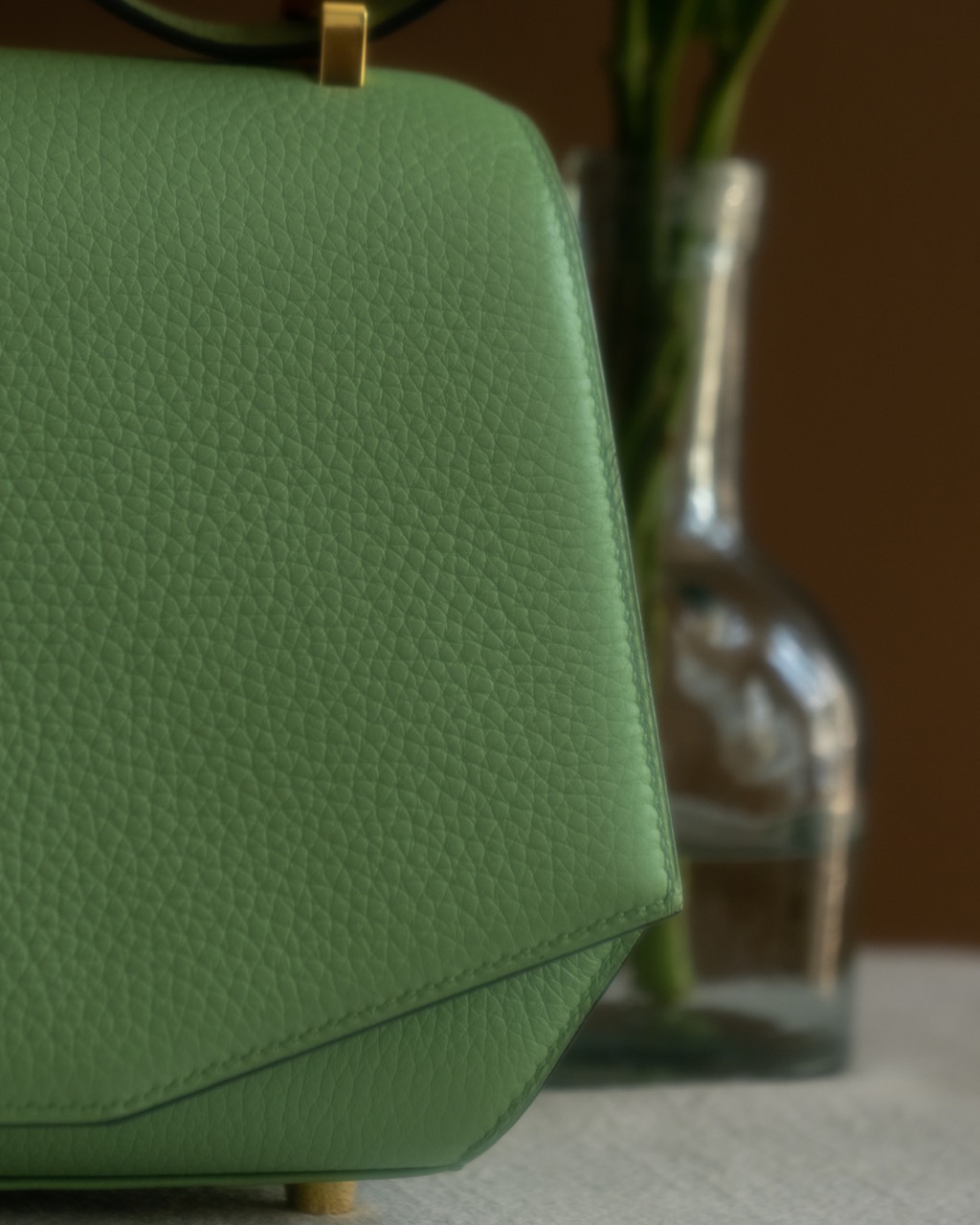 Sac Signature couleur vert pomme réalisé par notre artisan sellier-maroquinier dans notre atelier près de Paris. L’extérieur du modèle est en cuir de taurillon pleine fleur semi-aniline et l’intérieur est en cuir de taurillon nubuck, en provenance de nos fournisseurs français. Fermoir bijou siglé de la ligne Signature.