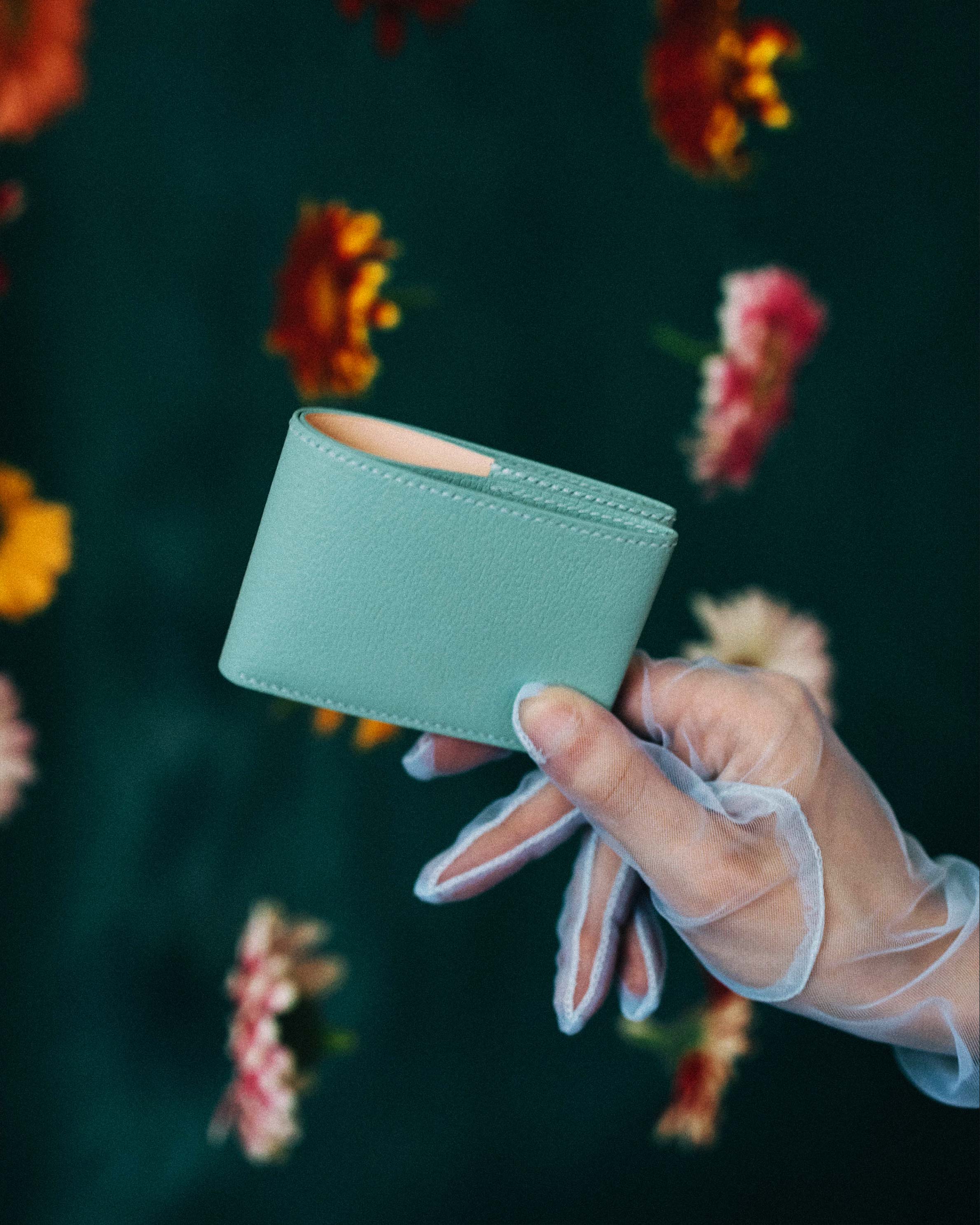 Mint green #1 Edition card holder handcrafted by our saddler-leather craftsman in our workshop near Paris. Learn more.
