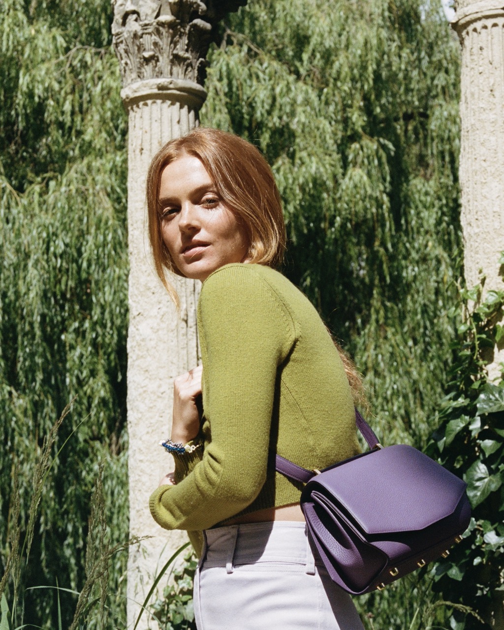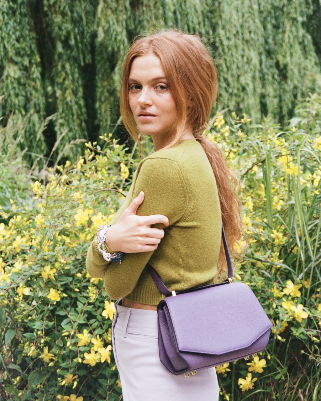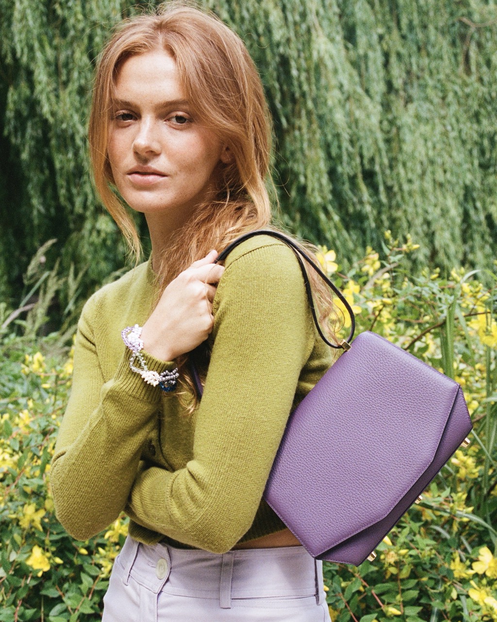 The Signature bag can be worn on the shoulder or cross-body. Contains ample storage space and two patch pockets.