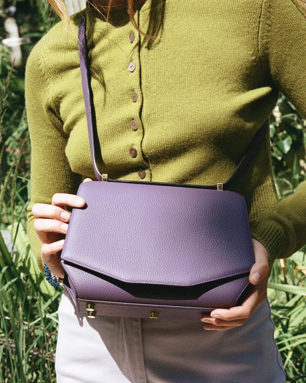 Blueberry Signature bag handcrafted by our saddler-leather craftsman in our workshop near Paris. The outside of the model is in semi-aniline full-grain taurillon leather and the interior is in taurillon leather nubuck finishes. Both leathers come from our suppliers based in France. Branded jewelry clasp from the Signature line.
