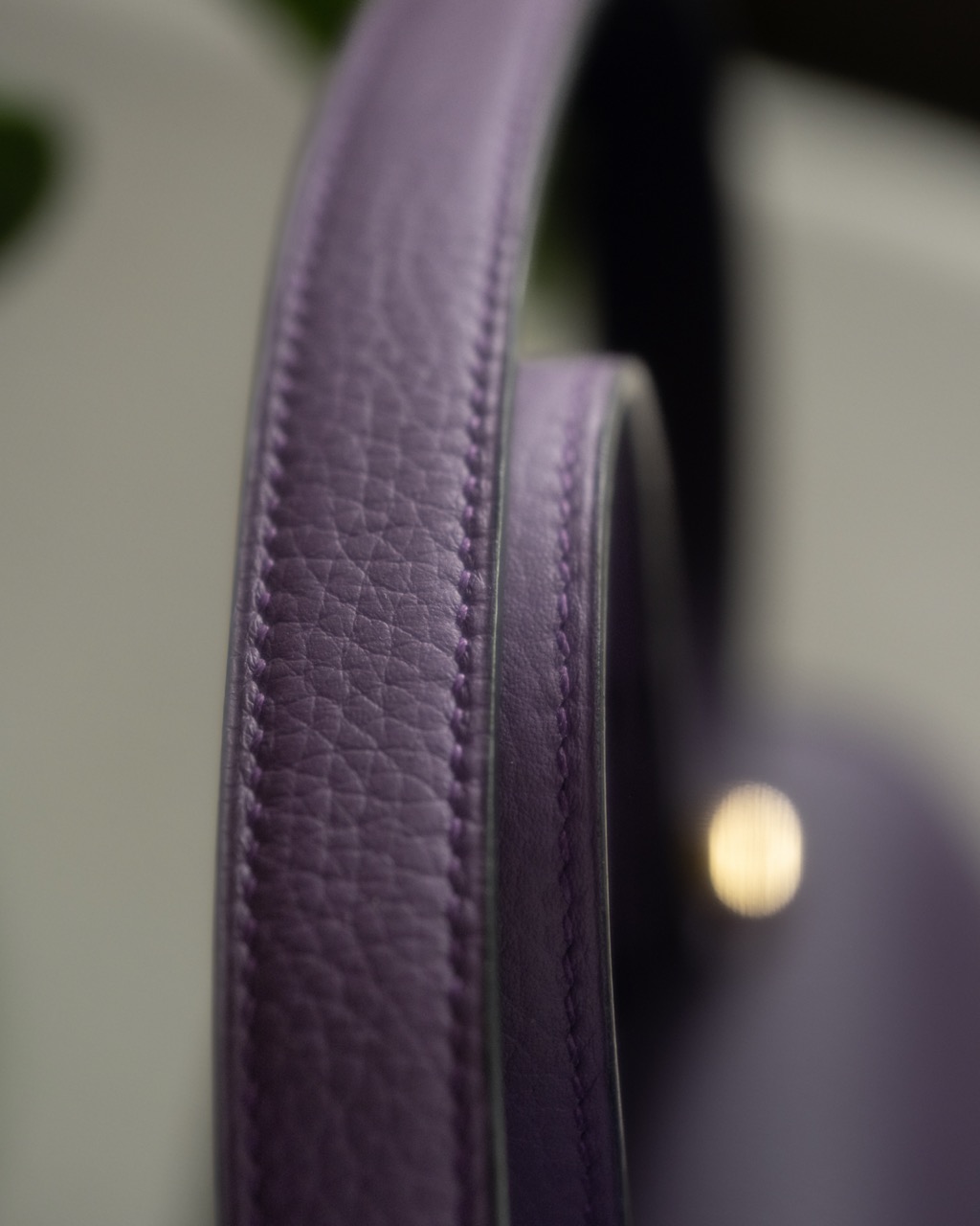 Saddle stitch seams handmade with a tone-on-tone linen thread coated with beeswax.