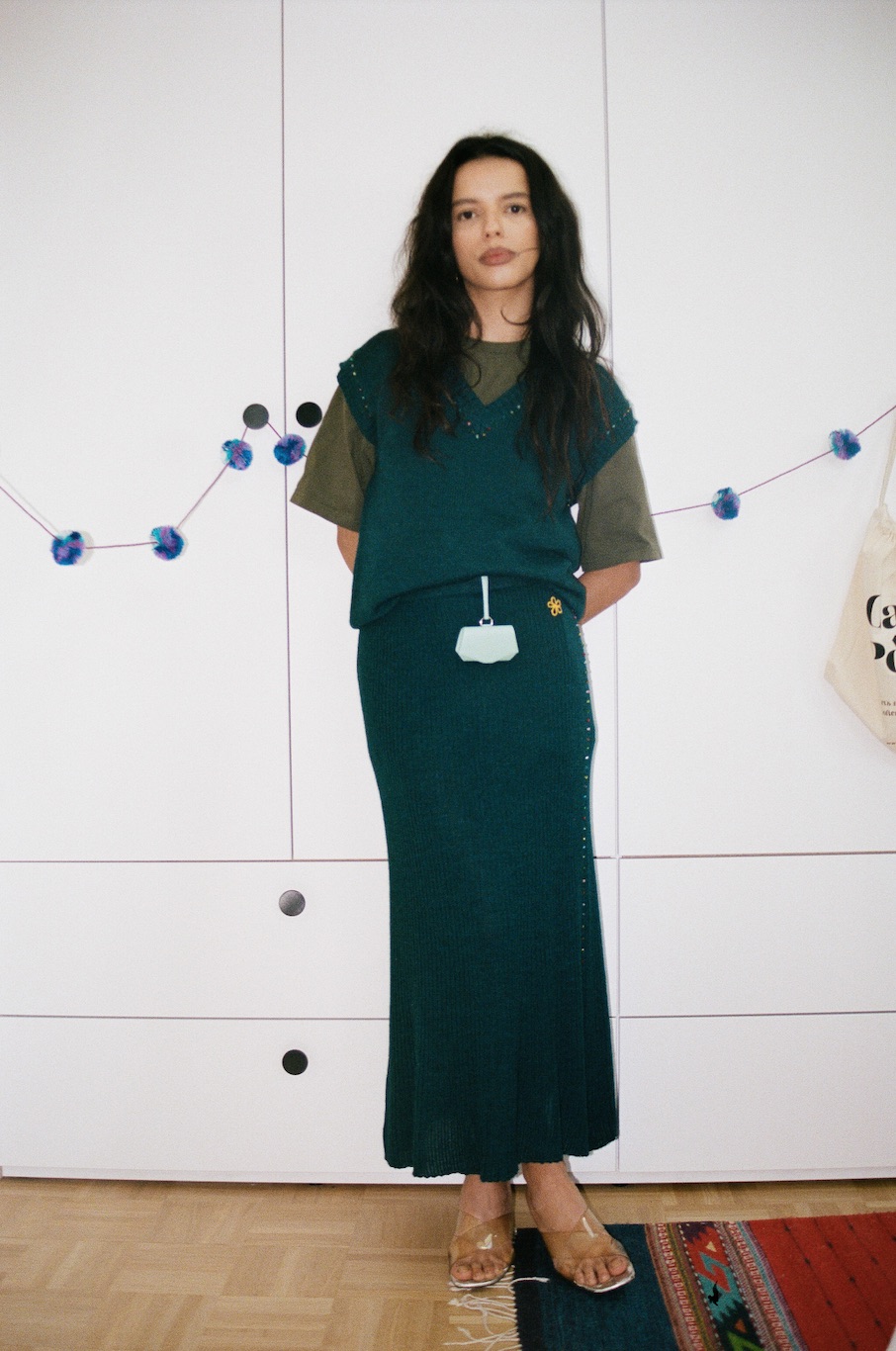 Mint green Signature charm handcrafted by our saddler-leather craftsman in our workshop near Paris. The leather used for this model is a full-grain goatskin coming from our supplier based in France. Snap button closure.