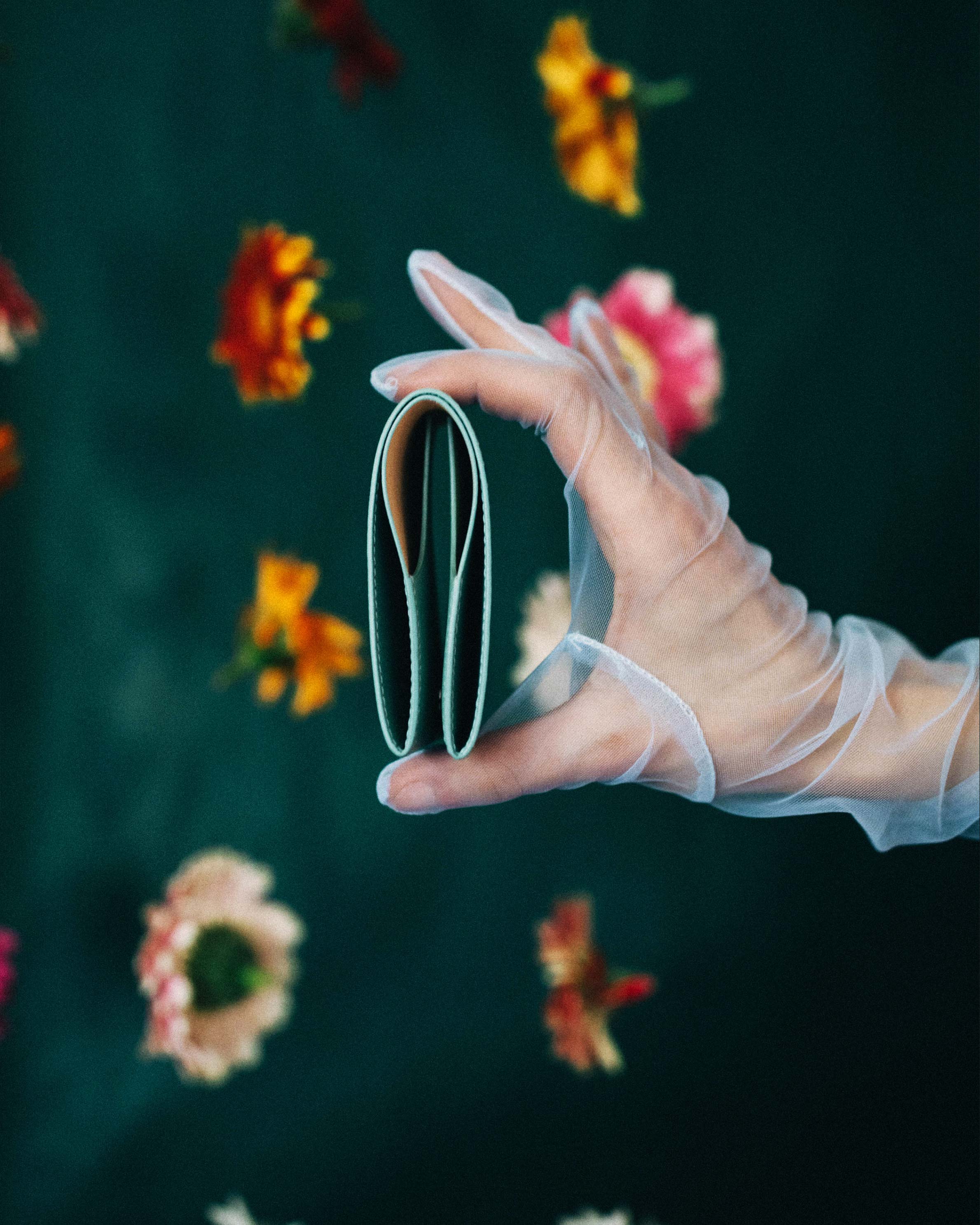 Porte-cartes couleur vert menthe réalisé par notre artisan sellier-maroquinier dans notre atelier près de Paris. L'extérieur du modèle est en cuir de chèvre pleine fleur et l'intérieur est en cuir de vachette naturel, pleine fleur et tannage végétal, en provenance de nos fournisseurs français. Fermeture à bouton-pression.